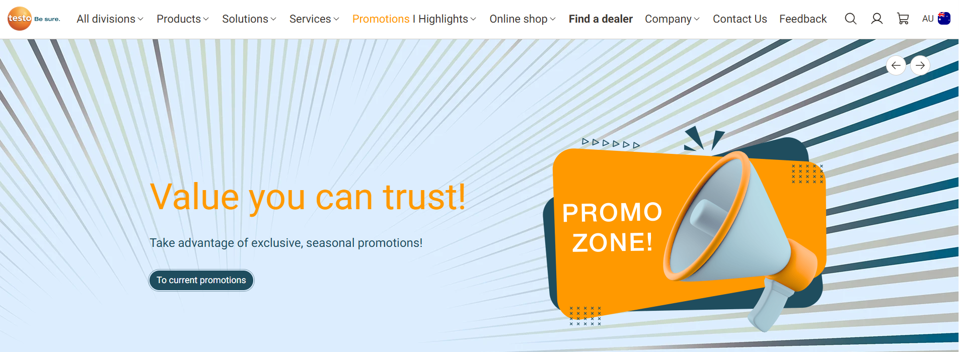 - • News, downloadables, and compliance content centered on the Testo lab and field solutions